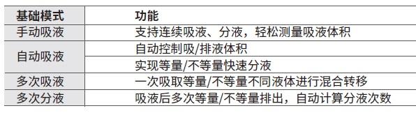 - 功能强大:4 种基础移液模式,可实现自由快速组合移液。