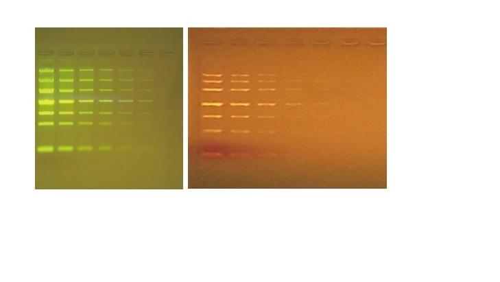 TGreen Monitor plus 蓝光电泳监测仪套装是基于 TGreen Monitor 的一款升级产品。套装内提供一台六一生物科技有限公司型号为 DYCP-31DN 的电泳槽,蓝光电泳监测仪的尺寸与电泳槽完全匹配;套装内还提供一件亚克力材质的切胶架(OSE470M-A001),切胶架直接放置于蓝光电泳监测仪上,方便凝胶回收的操作。使用滤光片,规避了使用传统滤光眼镜的人体接触污染风险。滤光片可 360 度自由固定,使用更方便。 采用 LED 蓝光光源,可用于多种安全染料/EB 染料染色的核酸的观察。 兼容的荧光染料:EB、 GeneGreen、GeneRed、GelGreen、GelRed、 Goldview 等。搭配荧光染料(如 GeneGreen),分辨率可达 2 ng。