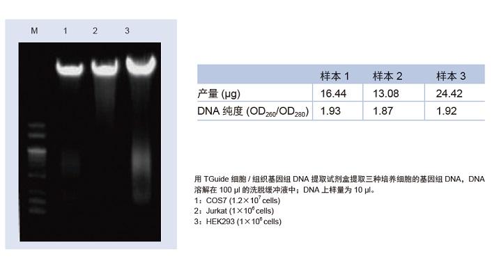 纯化的基因组 DNA 可以直接用于 PCR,定量 PCR,Southern 杂交,限制性酶切等实验。