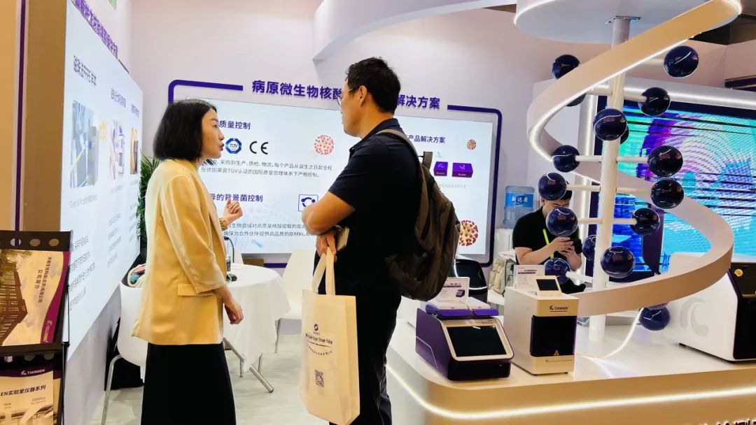 作为国内核酸纯化的领先企业,TIANGEN携病原微生物核酸提取检测解决方案与肿瘤样本核酸提取检测解决方案亮相参展。展会期间,TIANGEN展位吸引了众多专家和行业精英驻足。对展示的产品表现出浓厚的兴趣和高度的认可,积极与我们的技术人员交流探讨,纷纷表示希望未来能够进一步与TIANGEN建立合作关系。